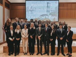 The curriculum of the New York Delegation includes weekly Monday meetings, weekend trainings training public speaking and negotiating, preparatory conferences in the region, a study trip to Berlin, and finally the conference in New York. There, participants not only attend the NMUN but also visit the Permanent Mission of Germany to the United Nations in New York, the EU Delegation to the UN in New York, and take part in a guided tour of UN Headquarters.